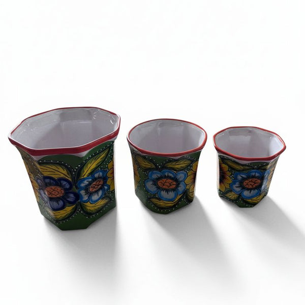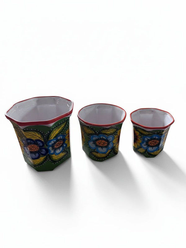 Set of 3 Blue and White Planters