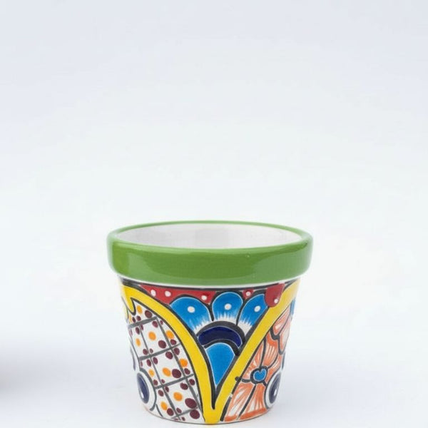 The product shown is a Talavera ceramic planter, a style of hand-painted traditional Mexican pottery. Product Details #1 - 3.75in High-4.5in Opening #2 - 4.25in High-5.25in Opening #3 - 5.5in...