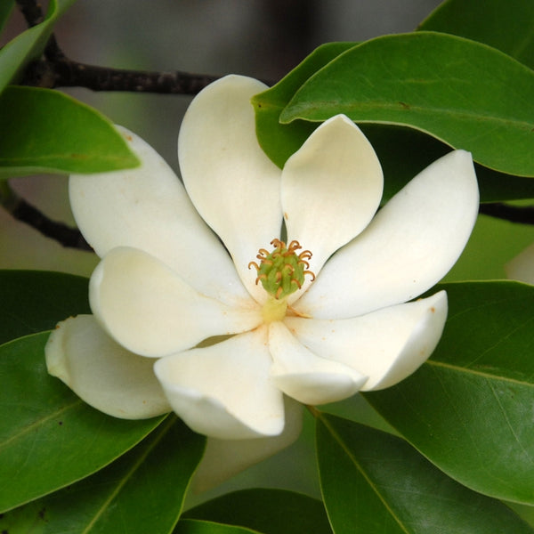 Sweetbay Magnolia (Magnolia virginiana) is a versatile, fast-to-moderate growing, native flowering tree or shrub (10–60 ft tall) known for its intense lemon-scented white flowers, slender habit, and silvery-backed leaves. It...