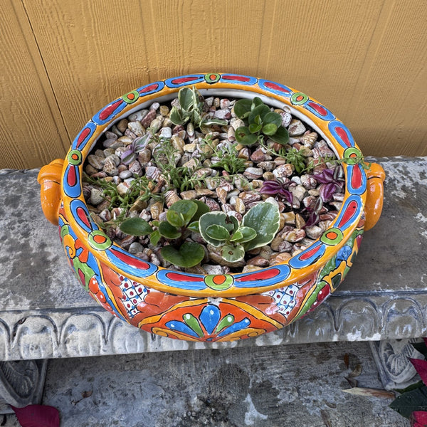 This is a rustic terracotta planter. It has a conical shape, tapering towards the base. The exterior surface features vertical ridges or grooves, giving it a textured look. The color...