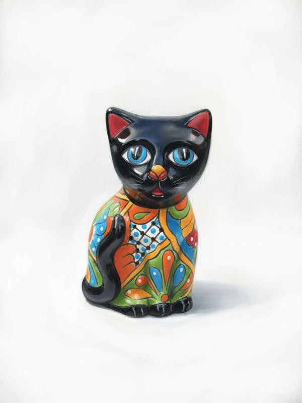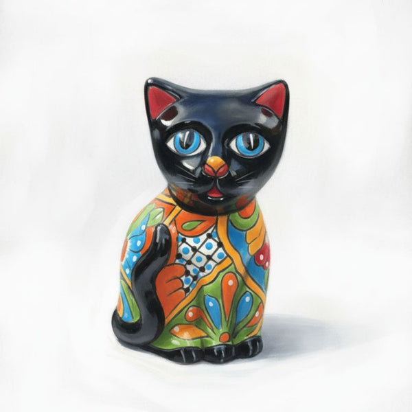 This is a hand-painted Mexican Talavera cat figurine. It is a type of collectible folk art pottery.  Handcrafted: Each piece is handmade and hand-painted by artisans in Mexico, ensuring a...