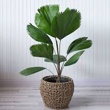 The Ruffled Fan Palm (Licuala grandis), native to the Vanuatu Islands, is a highly prized, slow-growing, understory palm featuring distinctive, glossy, circular, pleated leaves with notched edges. It typically grows 6–10 feet tall (max 15 ft) with a single slender trunk, making it an excellent, dramatic accent for tropical landscapes, shady spots, or as a large container specimen.