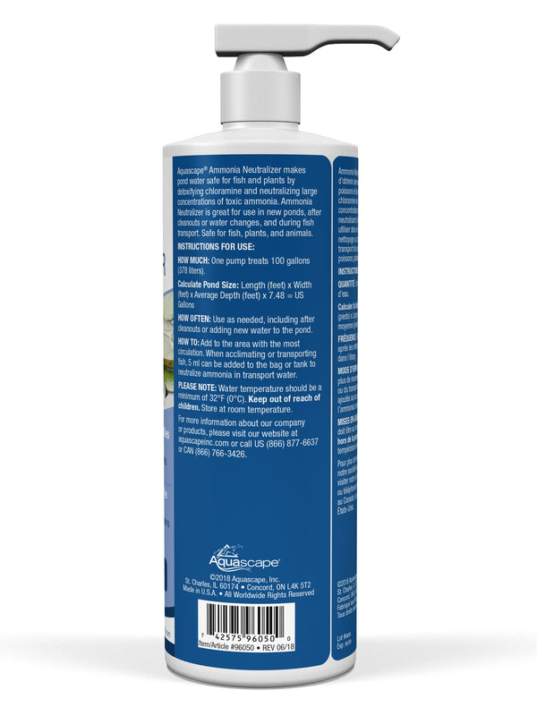 Aquascape Maintain for Ponds combines our most effective pond water treatments into one powerful formulation to successfully keep ponds clean, clear, healthy, and maintenance free. This easy-to-use water treatment contains a powerful blend of beneficial bacteria, phosphate binder, flocculant, and pond detoxifier. The bacteria blend includes lithotrophic, heterotrophic, and photosynthetic bacteria strains, keeping pond water healthy, beautiful, and safe for pond fish. The included phosphate binder locks up excess nutrients that could otherwise cause issues with water quality, and the flocculant quickly clears cloudy water by clumping suspended debris. A pond water detoxifier is added to the formulation to remove and detoxify chlorine, chloramine, heavy metals, and other toxins, making your pond water safe for fish and plants. The easy-to-use pump top accurately measures 100 gallons of treatment per pump and the 16-ounce bottle treats 10,000 gallons total. Maintain for Ponds is safe for fish, plants, pets, and wildlife.