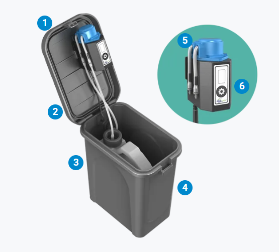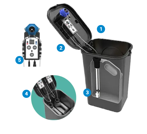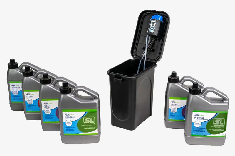 Large internal space fits one large gallon or up to two 64 oz. treatment bottles. Water treatments sold separately.