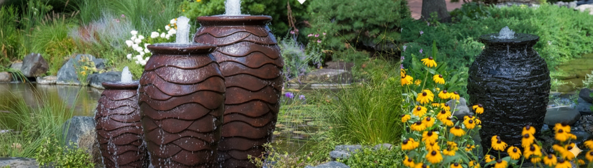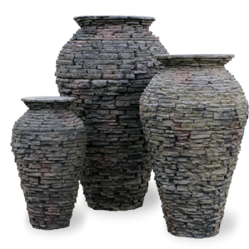 Urn fountains come in three different sizes and in three different styles to allow you to be creative and design your yard the way you want. The lightweight, durable fiber-resin composite construction is built to last and provides the look and beauty of real ceramic or rock.