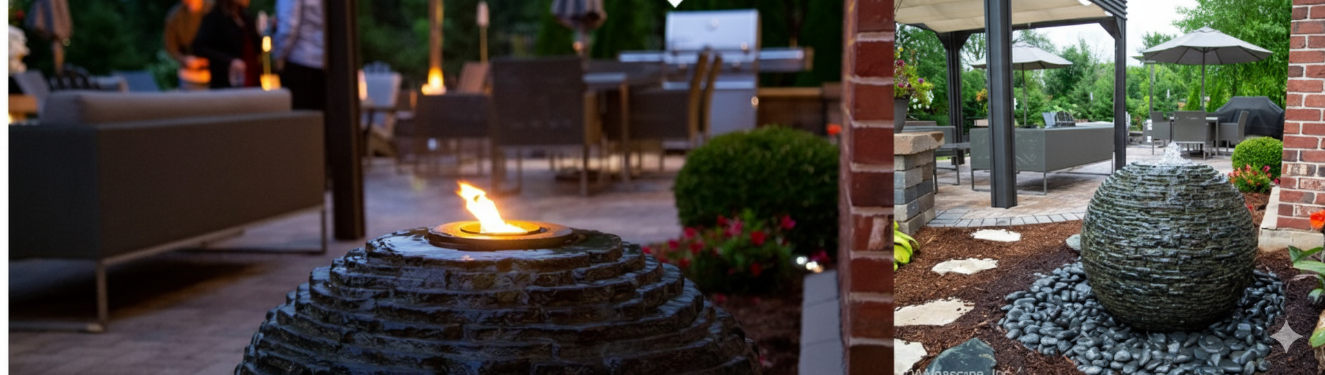 The Stacked Slate Sphere is the perfect addition to any backyard. Water is pumped up through the center of the fountain and gracefully cascades over the stacked slate texture, creating an impressive effect. Also, add the element of fire to your stacked slate sphere fountain with theAquascape Fire Fountain Add-On Kit(item #78221 sold separately).