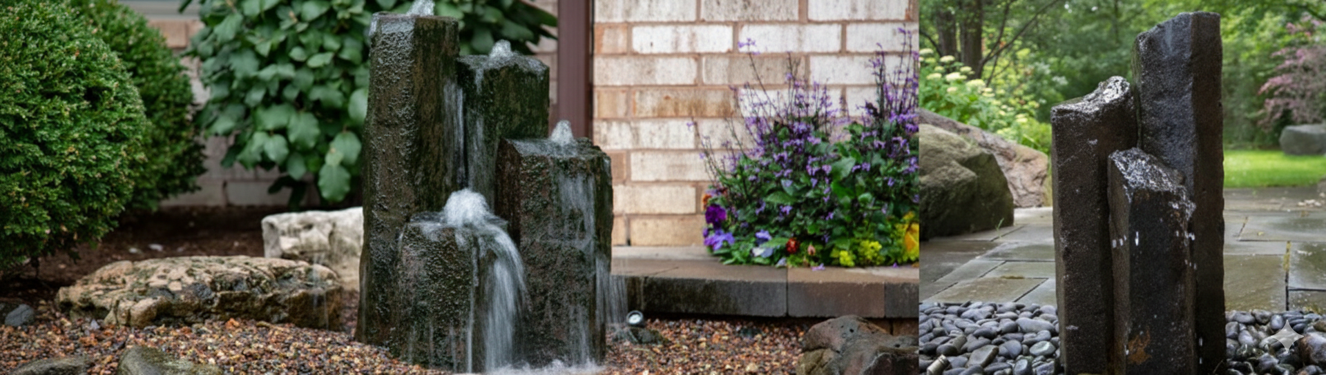 Stone columns incorporate the sights and sounds of water into any environment, providing a stunning, three piece, natural stone water feature. The 3-piece sets include stones of three varying heights. No two columns are the same, providing each stone with unique qualities.