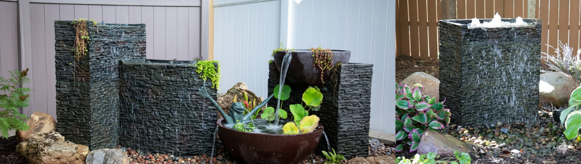 The possibilities are endless, install the spillway bowls and basins as a stand-alone feature or link several together for an inspired display. Please keep in mind these bowls are sold as stand-alone fountains. To create this decorative water feature in your outdoor living space you will also need a water pump and reservoir such as the AquaBasin® 45.
