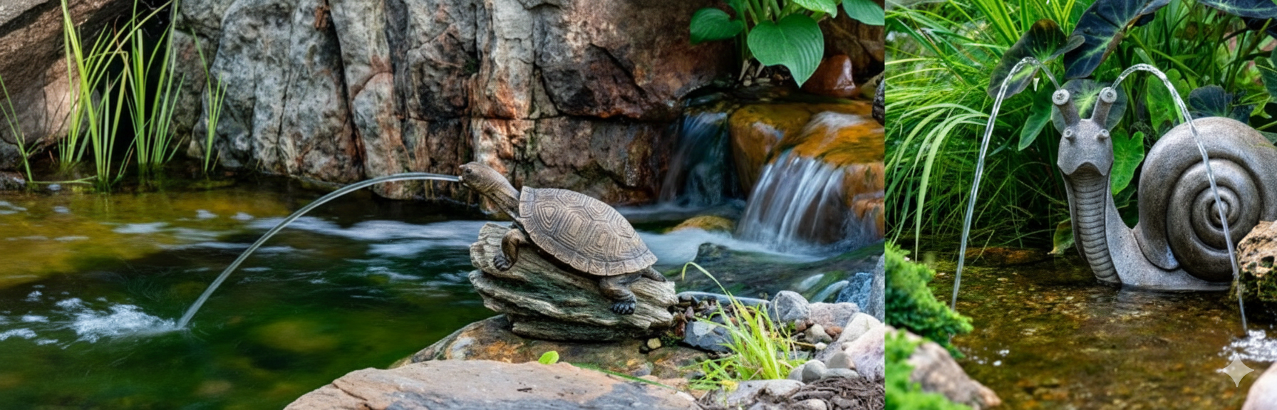 Aquascape decorative spitters are made from high quality, sturdy polyresin that is light-weight and UV and heat resistant. This material is also ideal for taking on the texture, shape, and finish of real brass and stone at a fraction of the cost and maintenance. Set up in your pond or waterfall to add a unique touch to your water feature.