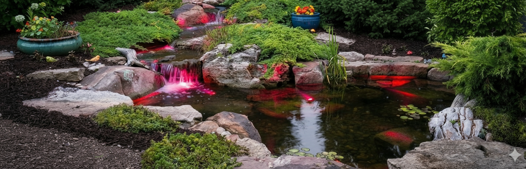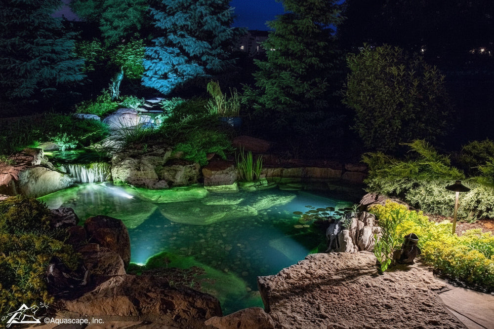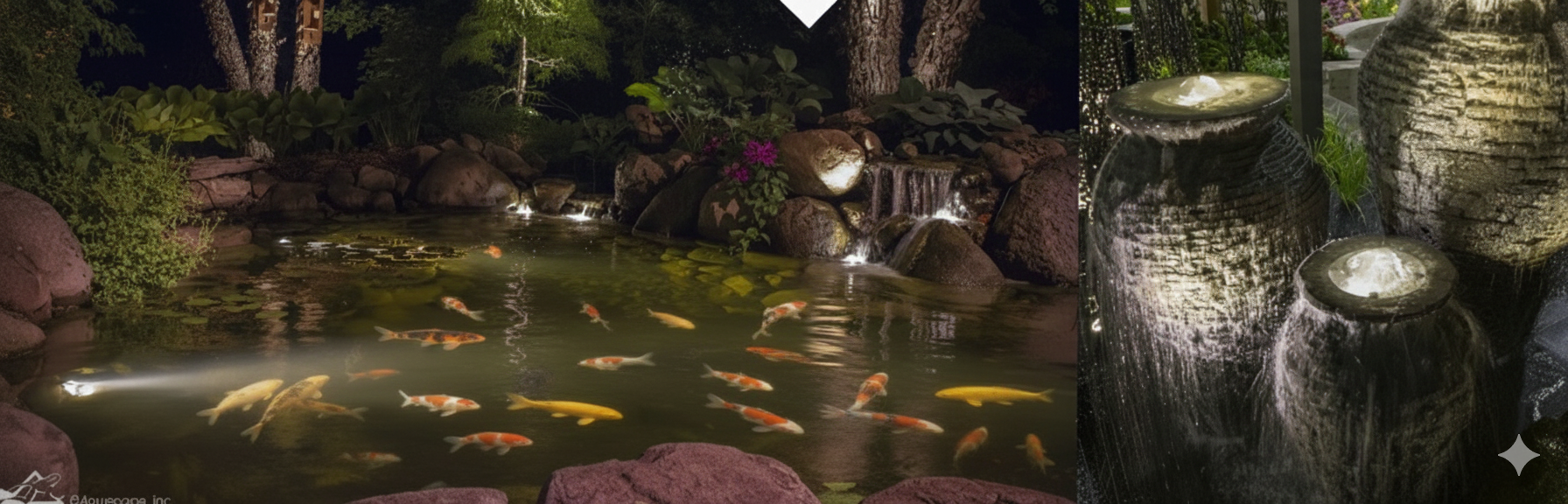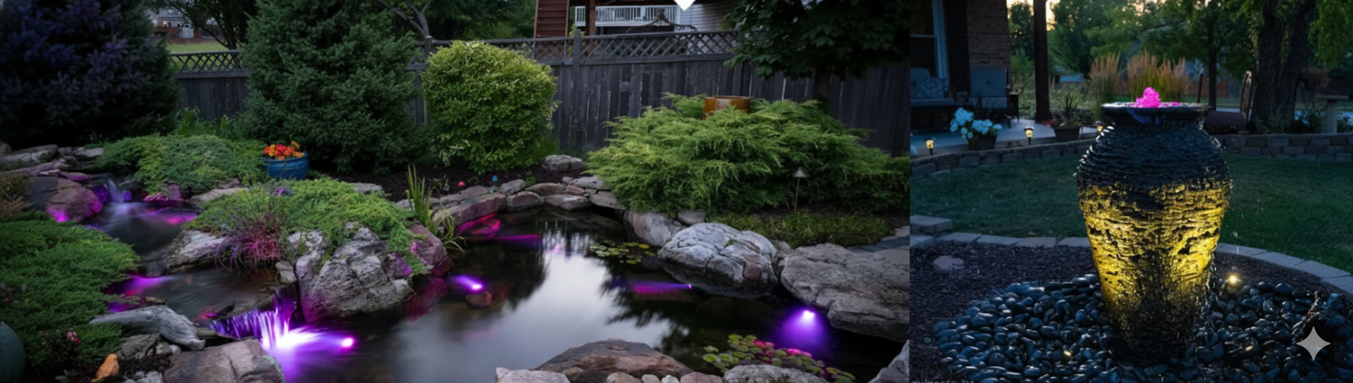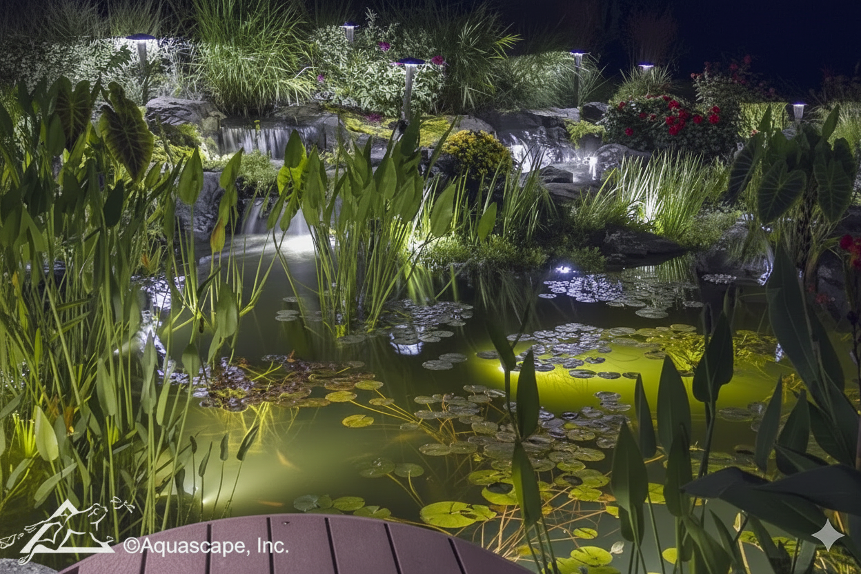 The complete line of Aquascape LED pond lights and garden lighting makes it easy to enjoy your water feature or garden at night.