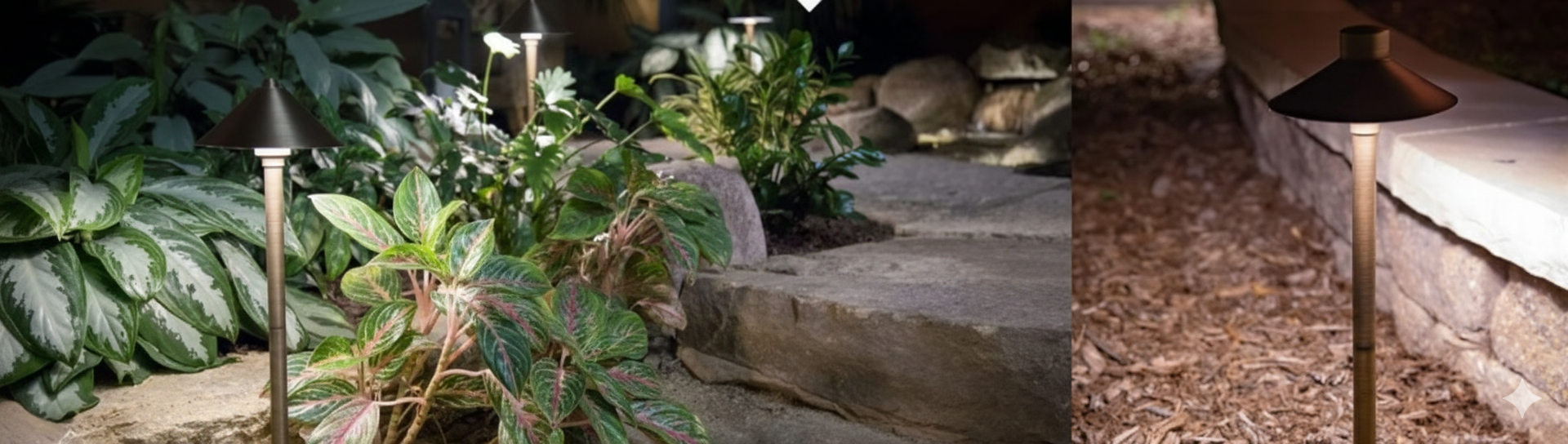 Path and Area Landscape LED Lighting provides beauty, charm and visibility by enhancing driveways, garden paths, plant beds, and areas surrounding waterfalls, ponds, and fountains.