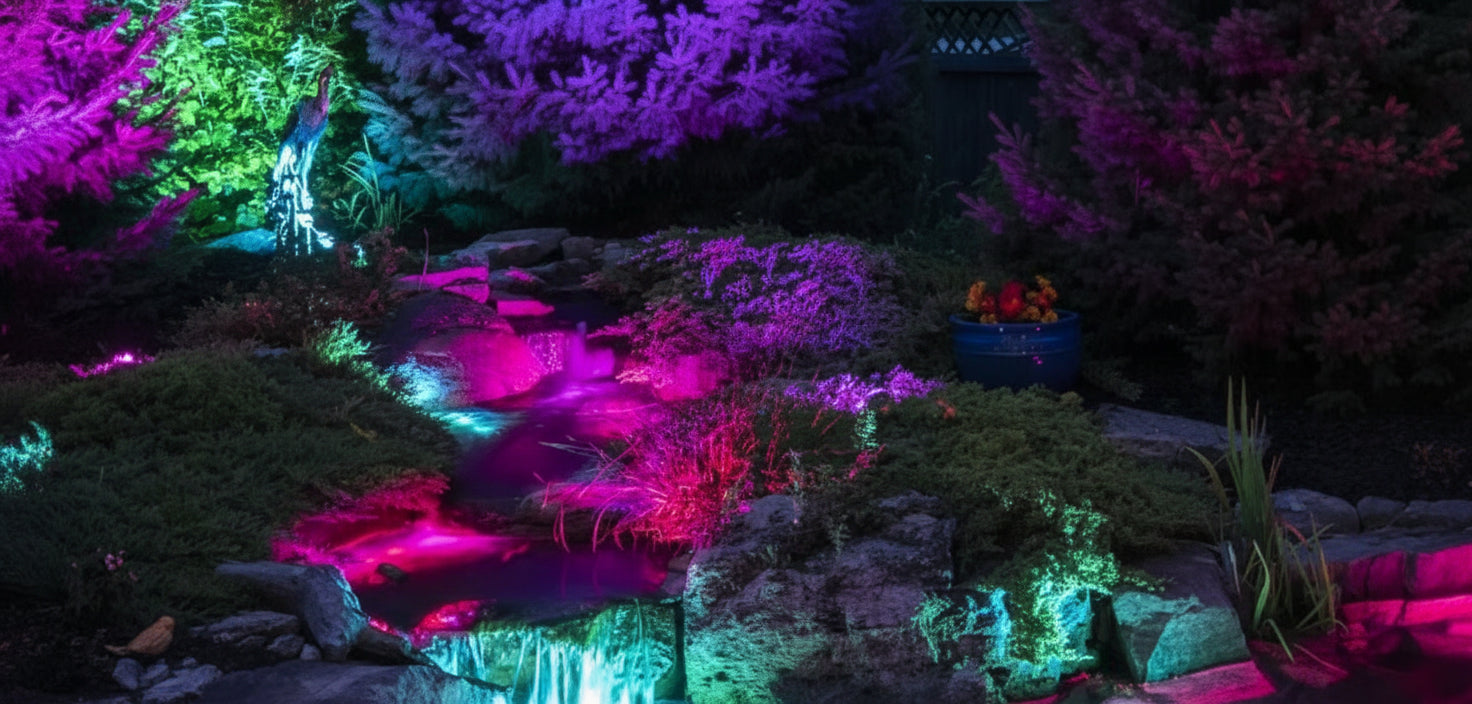 Aquascape LED Color-Changing lights provide high-output colors that can even be seen in dusk/early evening hours.