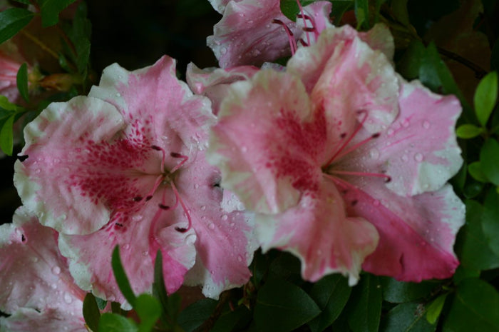 The Conversation Piece Azalea is a versatile, low-maintenance evergreen shrub (Zones 6-9) known for producing massive, 4-inch ruffled blooms in shades of dark pink, white, and variegated pink-and-white on the same plant. Ideal for Florida landscapes, it thrives in part sun, reblooms in spring and fall, and reaches 2-5 feet tall.