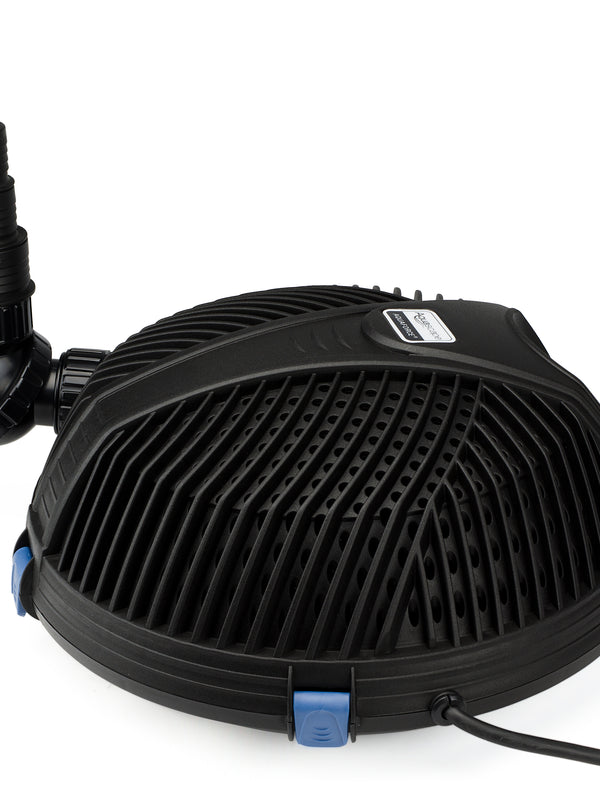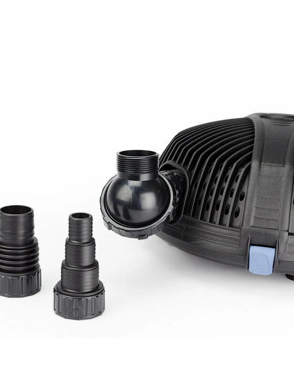 The AquaForce® 3600 Solids-Handling Pond Pump provides flow rates up to 3,868 gallons per hour and is ideal for use in ponds, waterfalls, and other water feature applications. A protective pre-filter cage and wide, flat base allows the pump to be placed directly into the pond. The pump's asynchronous motor technology is extremely energy efficient, saving hundreds of dollars over traditional water pumps. Its oil-free design and high-torque performance will provide years of trouble-free operation, while the protective pump cage will handle solids up to one quarter of an inch, preventing clogging and reducing maintenance. A variety of fittings is included for simple installation, including a rotational ball output that allows the discharge position to be easily adjusted for simple installation. The AquaForce® 3600 Solids-Handling Pond Pump is backed by a 3-year limited warranty.