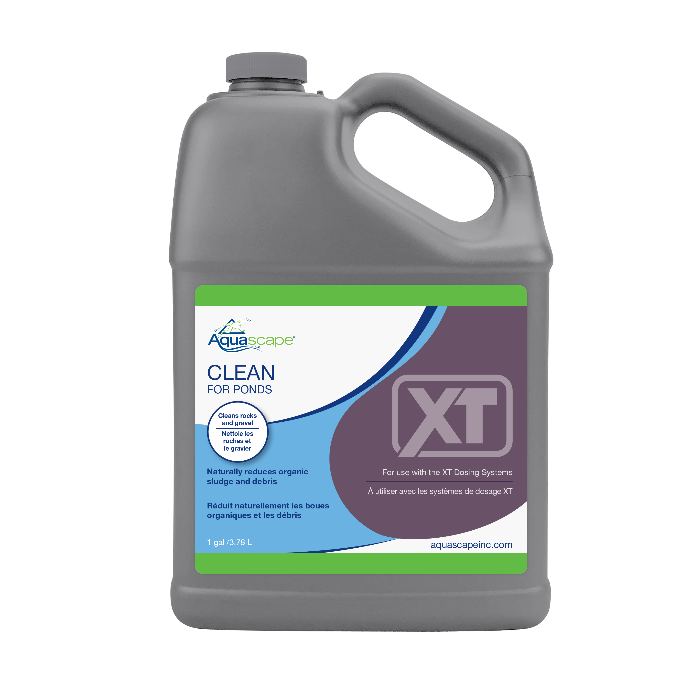 Aquascape Clean for Ponds XT makes it easy to quickly optimize the quality and clarity of pond water while drastically reducing filter maintenance, keeping ponds clean, clear, and beautiful. Clean for Ponds XT is available in half gallon and gallon options and designed only for use with the Smart Pond Dosing System XT. Clean for Ponds XT uses a powerful blend of heterotrophic bacteria to naturally digest organic waste or sludge caused by uneaten fish food, fish waste, and decomposing leaves and debris. The high concentration of bacteria will work to clean between rocks and gravel while keeping pond filters clean, including filter mats and biological filter media. Clean for Ponds XT is safe for fish, plants, pets, and wildlife. Clean for Ponds XT is also available in an extra strength, triple-concentrated formula (3X) for use in larger ponds or for extending the duration between re-fills.